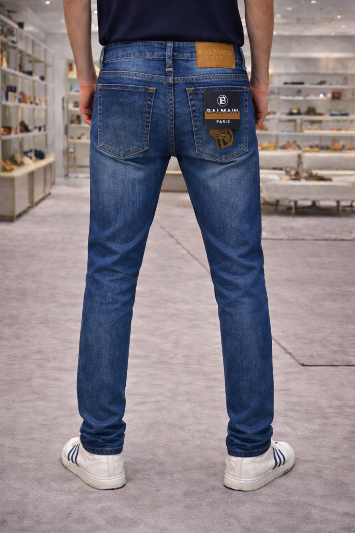 Balmai n Paris Imported Blue Super Premium Denim With Brand Box Packing And Carry Bag F3447-B2