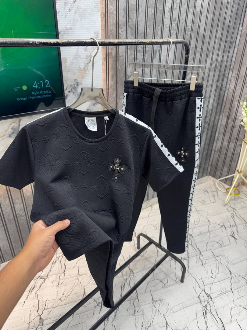 Chrome.Hearts.100%.Imported.Embossed.Fabric.Very.Premium.Half.Sleeves.Tracksuit.MR318