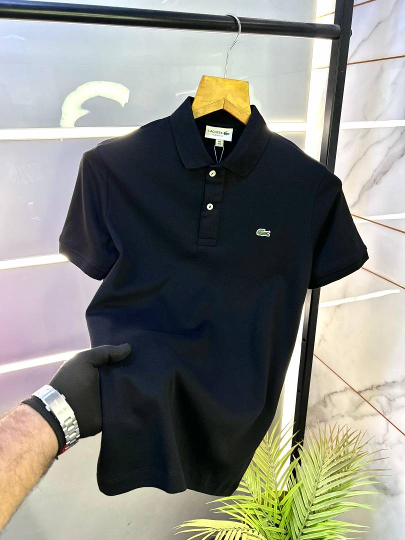 Lacost e Black Polo Premium Collar Neck T-shirt F2887-BL